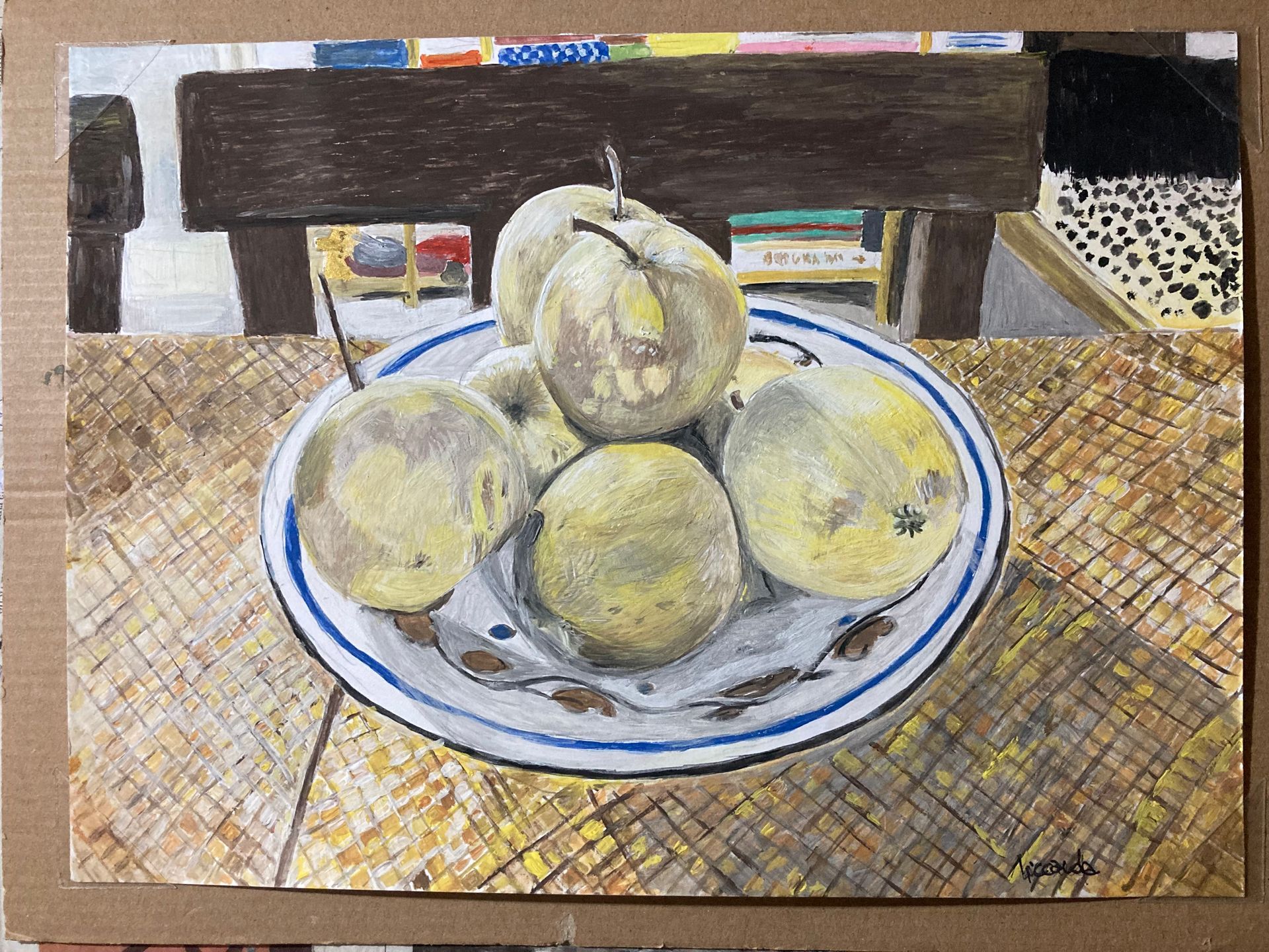 Ultimamente ho realizzato alcune nature morte composte da frutta e verdura del banco del mercato disposte sul tavolo da pranzo.